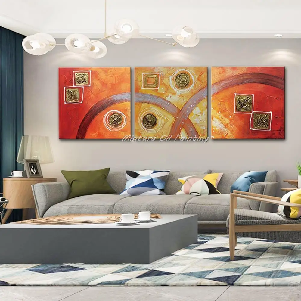 modern touch to your home with this 3-piece hand-painted abstract canvas wall art. Perfect for living rooms, stylish and ready to brighten your space.