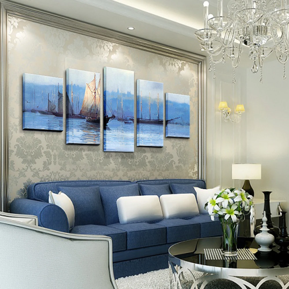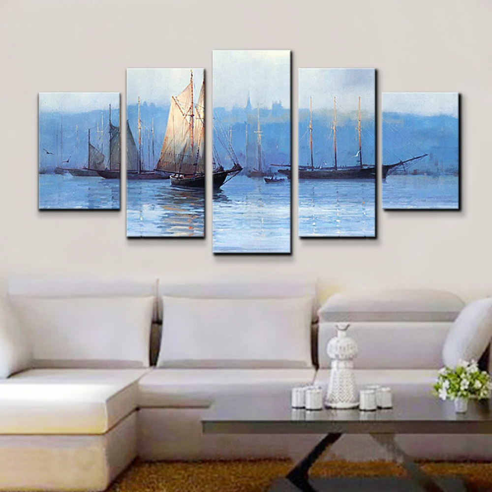 Modern Coastal Style – The fresh ocean blues and sailing boat theme bring calm energy into living rooms, bedrooms, or offices.