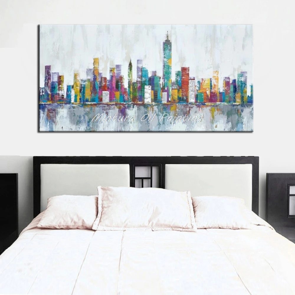 Mintura’s hand-painted New York skyline oil painting brings the city’s energy into your living room. Abstract cityscape style on canvas, with custom sizes available.