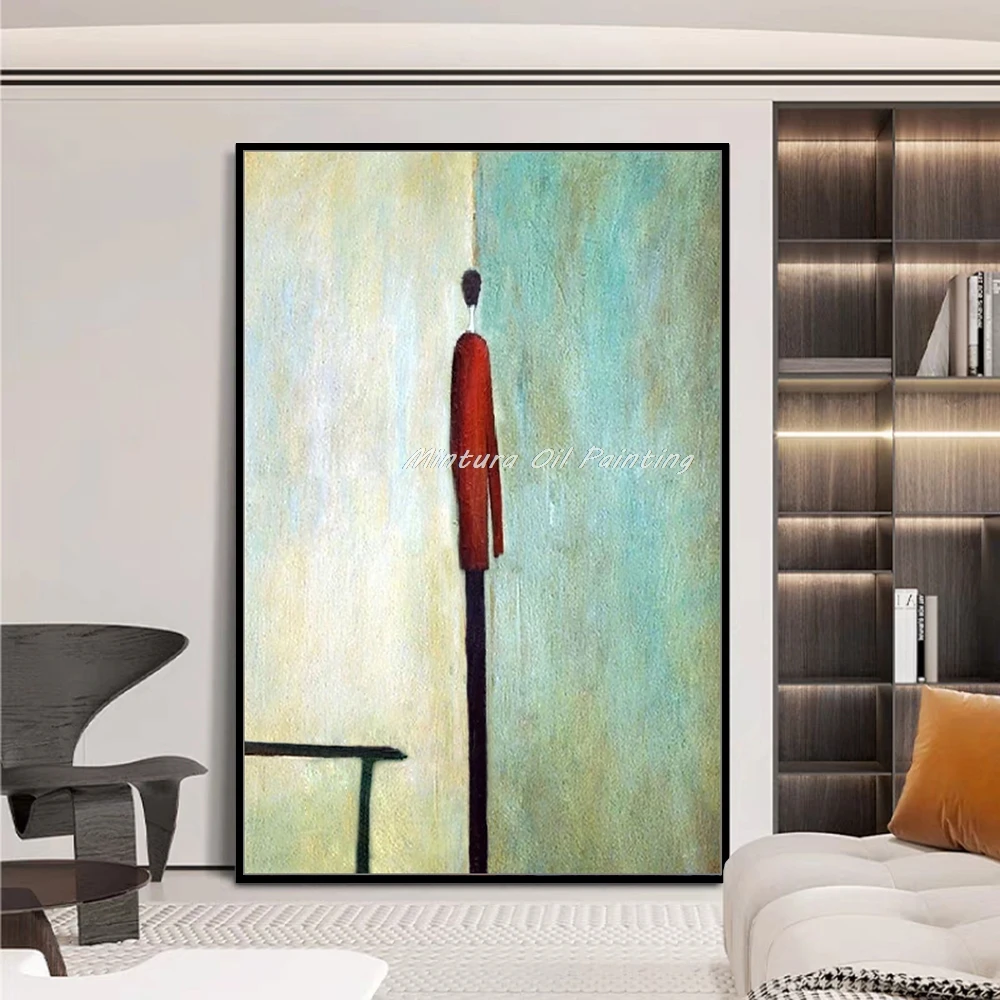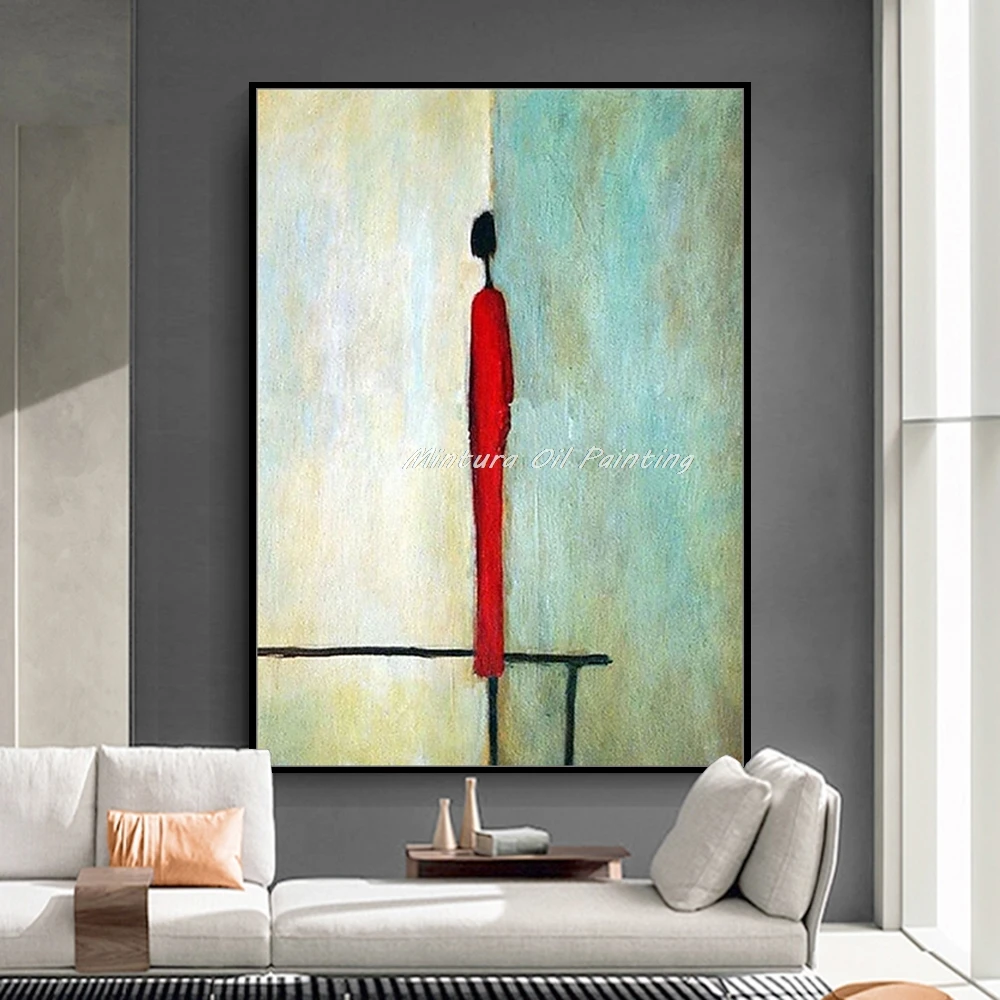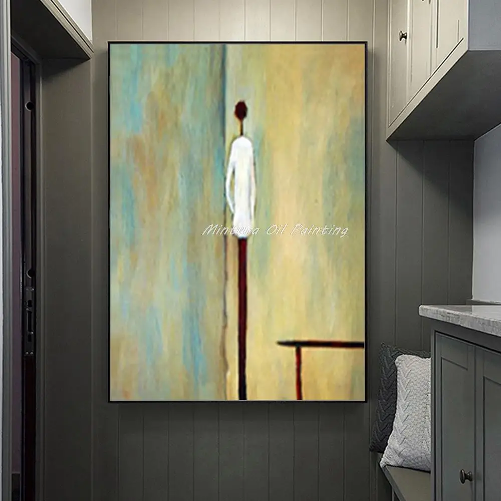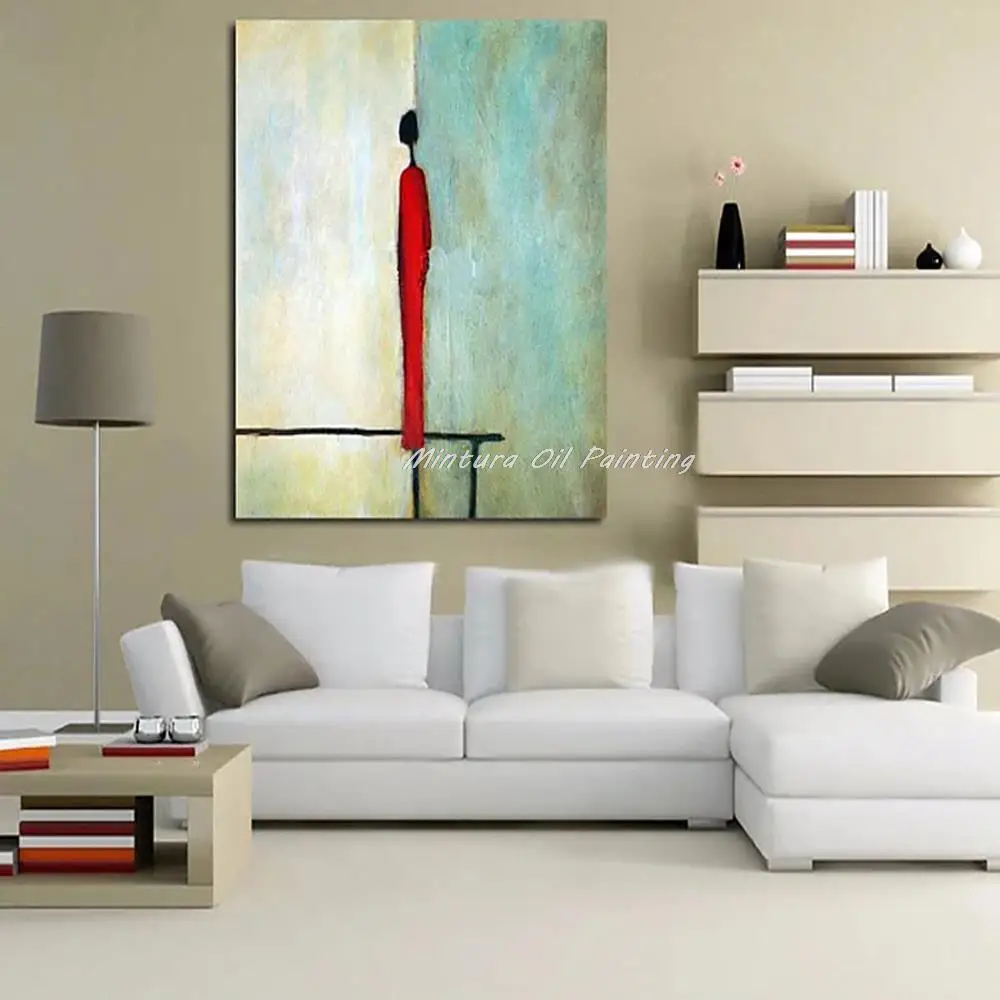 Transform your living room into a modern art gallery with this stunning, original abstract figure oil painting from Mintura. This is not a print; it is a one-of-a-kind piece of art, 100% hand-painted by professional artists. The dynamic composition and rich, textured acrylics create a sophisticated and powerful focal point, perfect for any contemporary home or office.