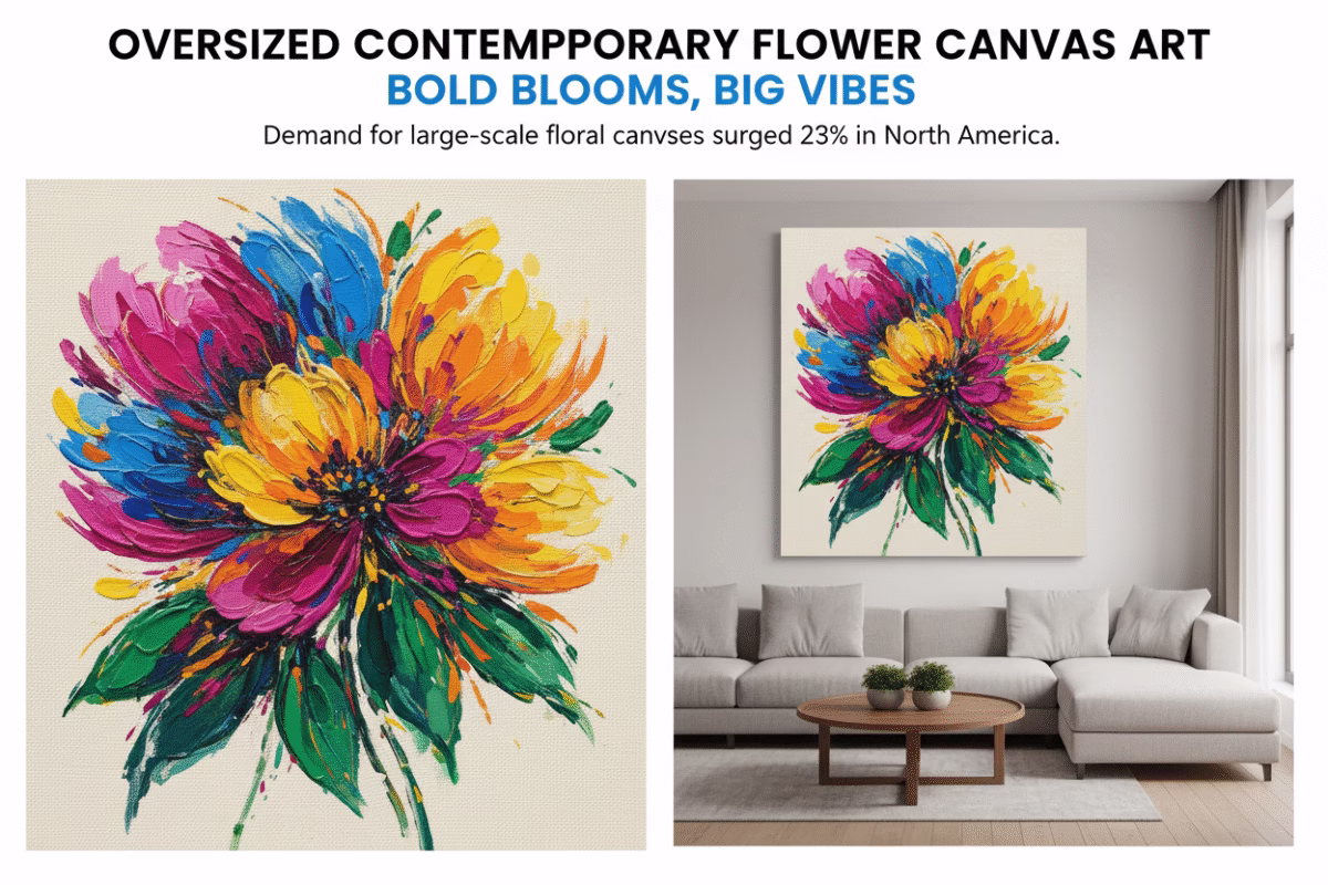 ➔ Big Blooms, Big Impact: Oversized contemporary flower artwork brings bold personality and visual drama to bland spaces, turning walls into focal statements.
