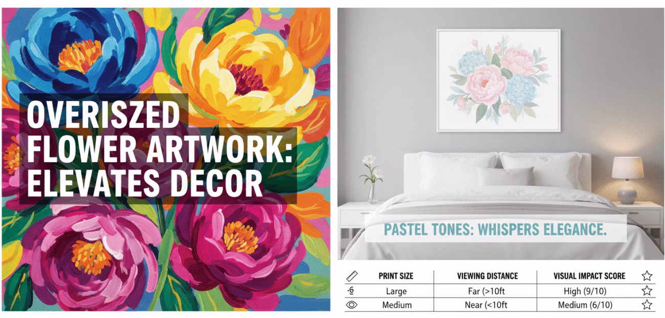 ➔ Style Versatility is the Secret Sauce: From abstract explosions of petals to soft impressionistic strokes, there’s a floral aesthetic for every interior—from maximalist lounges to minimalist sanctuaries.